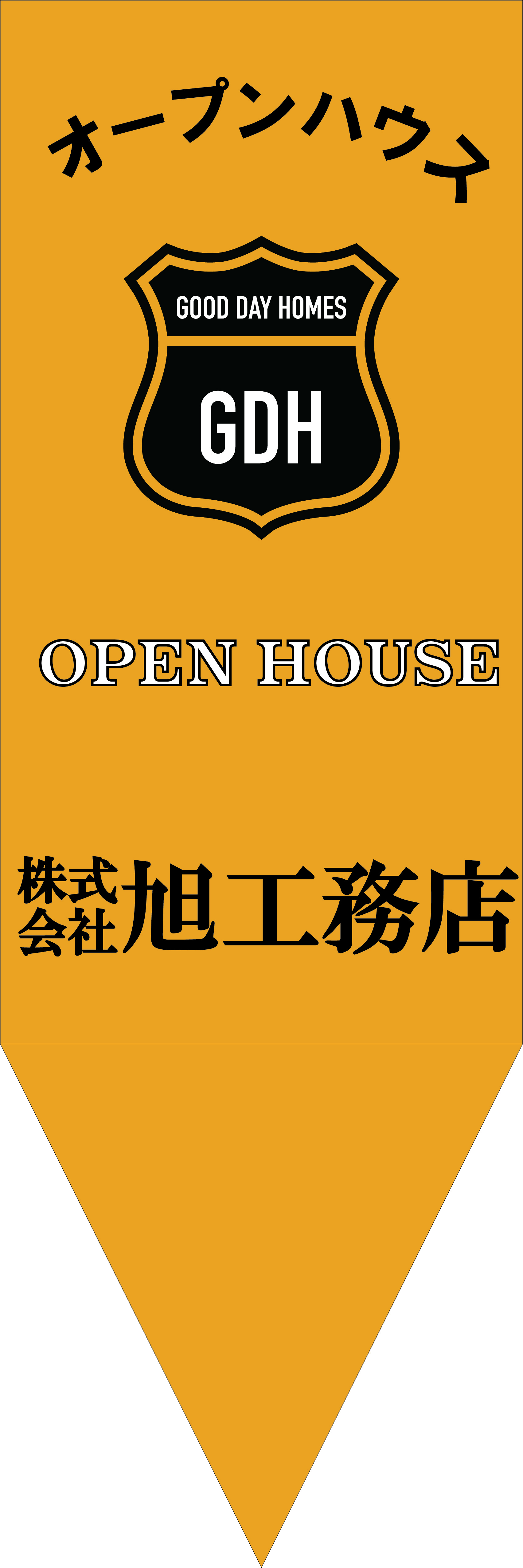 こんにちは。 建築課の濱田滉大です。 以前、私の方で作成したGOODDAYHOMESの旗ですが、先日営業スタッフさんの方から そう言われるとそんなそうな気もするし、そうでもないような気も(笑) なにはともあれ(^-^;さっそく、別のバージョンの作成に取り掛かっております!!まあ、別バージョンといっても色違いなだけなんですけどね(笑)まだ最終決定ではありませんが、blogをご覧の皆さんにちょっとだけ先行公開します。 今度はイエローが主体となりました(^^)/この後、細かい修正を加えて、実際の旗となります。来週のオープンハウスにはさすがに間に合いませんが(そこまでに間に合わせようとするとさすがにとんでもないことになるので…)完成したら、皆様にもお知らせします。ここまで言っておいてデザイン変更になったらどうしよう(笑) 旭工務店公式LINE@では直接のお問い合わせメッセージもお待ちしております。 家づくりに関しての気になる疑問から、具体的なお悩みまで、お気軽にご相談下さい。クレーム…もとい(笑)要望の方が届きました。その内容は、「中央モデルの外観とべストマッチ過ぎて、見えずらいのではないのか?」という事でした。