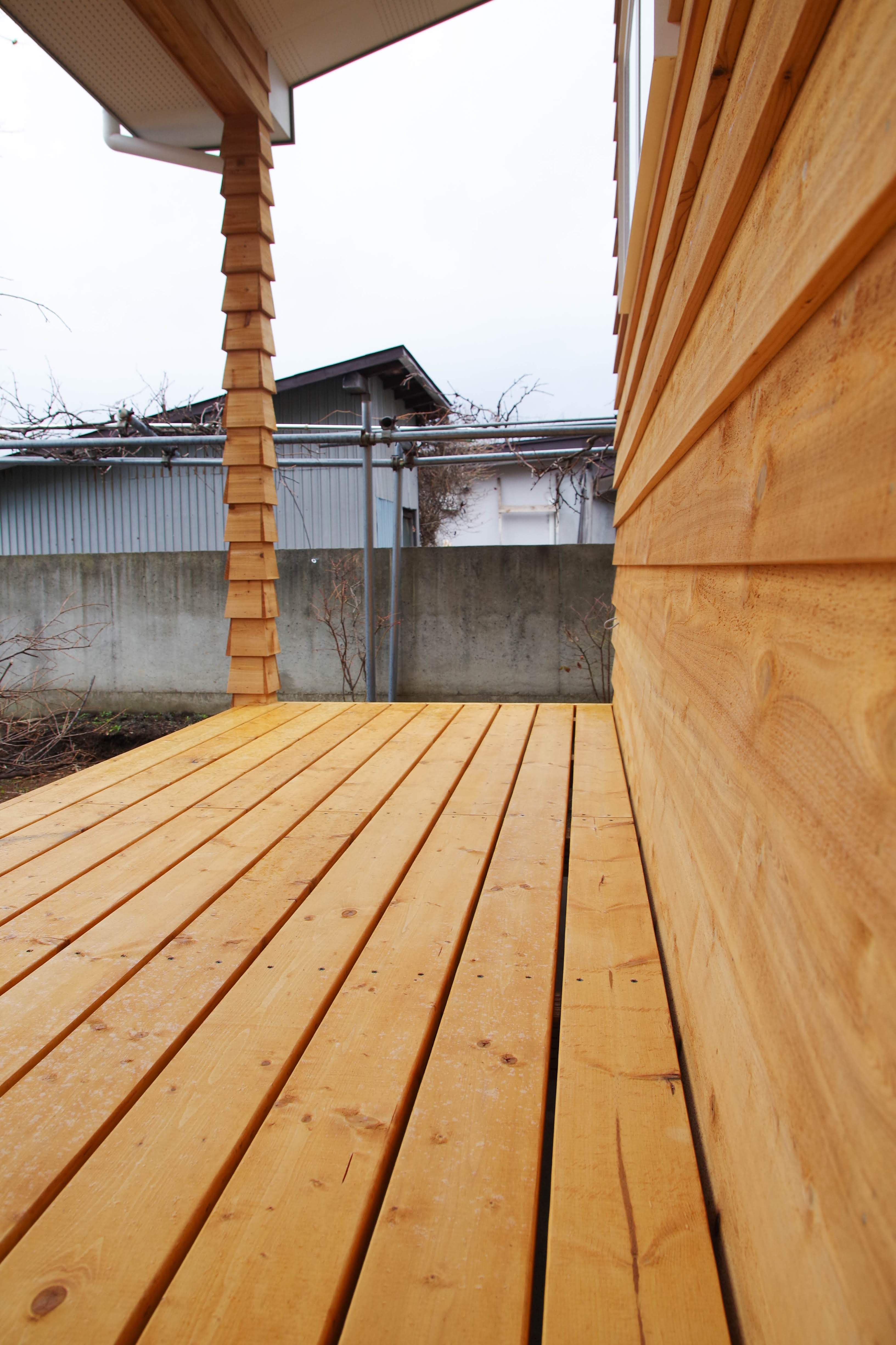 木製のテラスが備え付けられています!半外の空間があるのは、珍しいですよね。裏の景色が抜けているので景色も抜群です!