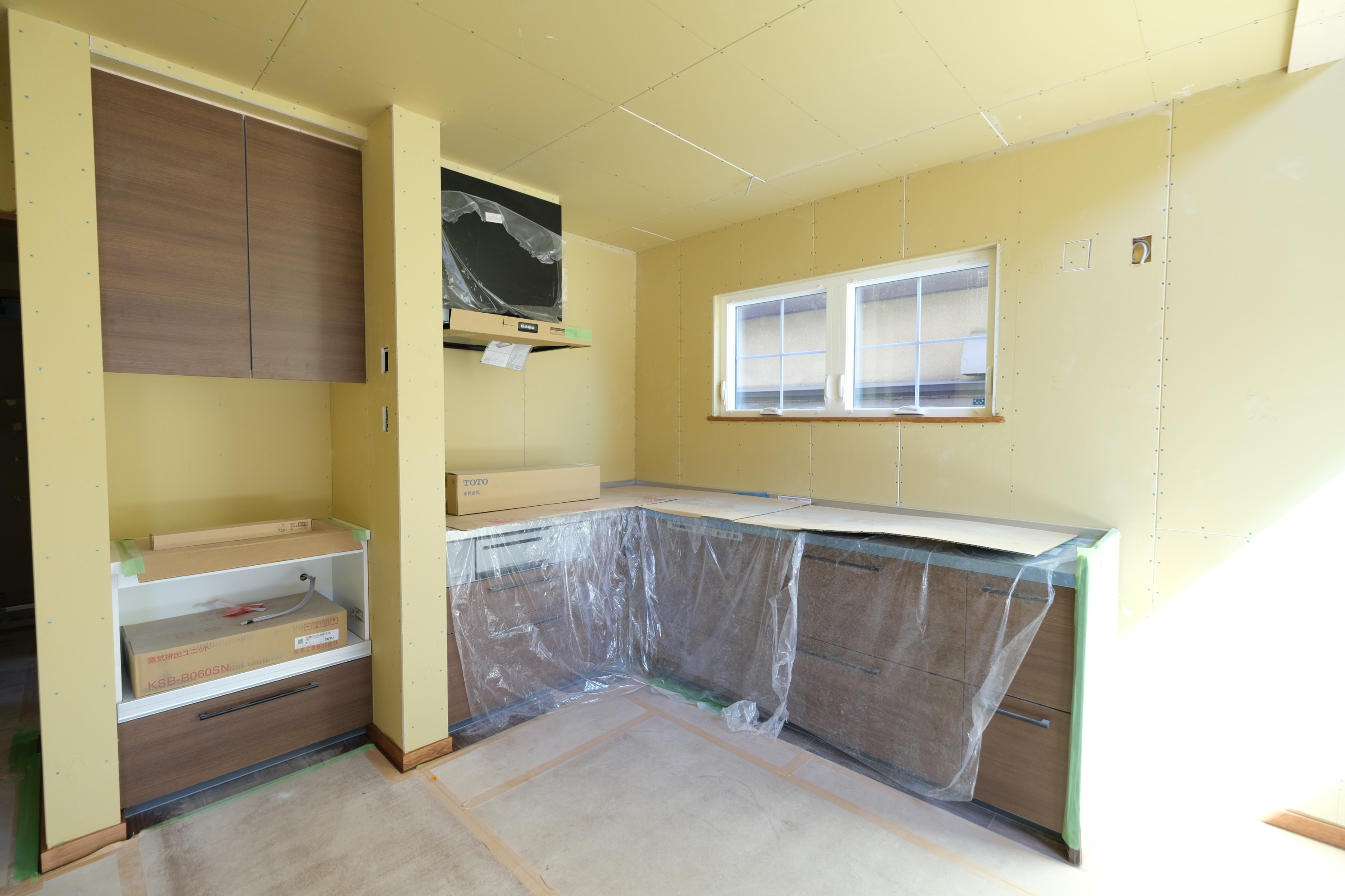 お気に入りのスニーカーをうっかり注文しちゃって 収納場所をどうするか考えている、濱田滉大です(笑) 先日のblogにて、「浪館前田」の現場の様子をお届けしましたが、 2階部分の写真も実は撮ってまして、リビング吹き抜け部分となる予定の窓から日の光が降り注いでおりました! こういった部分に窓があると、照明が無い状態でも、かなり明るくなります(^_^)そして、この写真を撮るために私はものすごくゆっくりと2階部分に上りましたが(笑) そして、内部工事がひと段落した今の段階ですでにキッチンは設置されています!大体の場合は、内部工事と並行してキッチンの設置は行われる事が多いです。 何故、このタイミングでキッチンが設置されるのかというと、「(ある程度)配置が決まっている」のと「大きいので、後から入れようとすると大変(笑)」というのが理由として挙げられます。 その為、住宅設備は大きい順に「ユニットバス」→「キッチン」→「トイレ&エアコン等」→「照明器具」という形で設置されるのが、一般的です。ユニットバスが住宅設備という括りでいいのかはアレですが(笑) 家造りの際に「照明器具を先に決める」方もいますが、上記のような流れで行くので、まずは「お風呂」と「キッチン」を先に決めていただいた方がスムーズに進みます!こういう言い方もアレですが、照明器具はある程度、リカバリーが効きますが上記の2つはそうも行かないので(^-^;まずはその2つを決まることに集中していただいた方が私達、建築会社としてもありがたいです♪ 旭工務店公式LINE@では直接のお問い合わせメッセージもお待ちしております。 家づくりに関しての気になる疑問から、具体的なお悩みまで、お気軽にご相談下さい