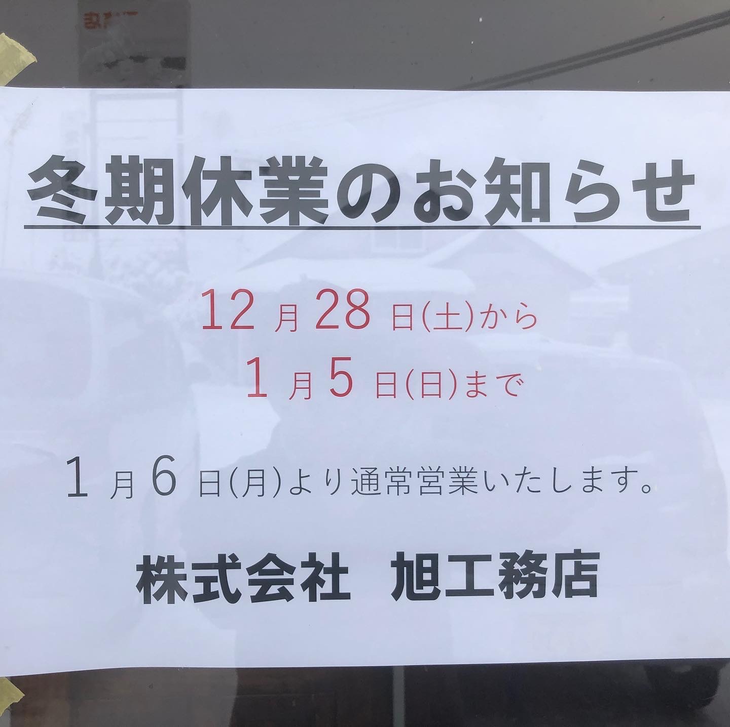 こんにちは。 建築課の濱田滉大です。 本日、午前中を持ちまして、旭工務店の営業を終了しました! 2019年12月29日~2020年1月5日が冬季期間となりまして、1月6日より通常営業いたします。電話・メールでのお問い合わせ等につきましては1月6日以降の対応となります。 今年は新しいモデルを立てたり(売却済み)旭工務店としては初の企画型住宅のGOODAYHOMESを企画したりと、会社としても私個人としても色々と成長できた(変化した)一年でした!!皆さん、今年一年間ありがとうございましたm(_ _)m