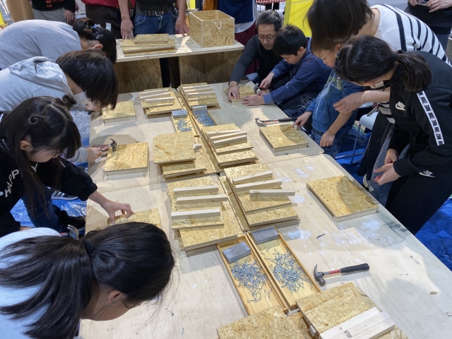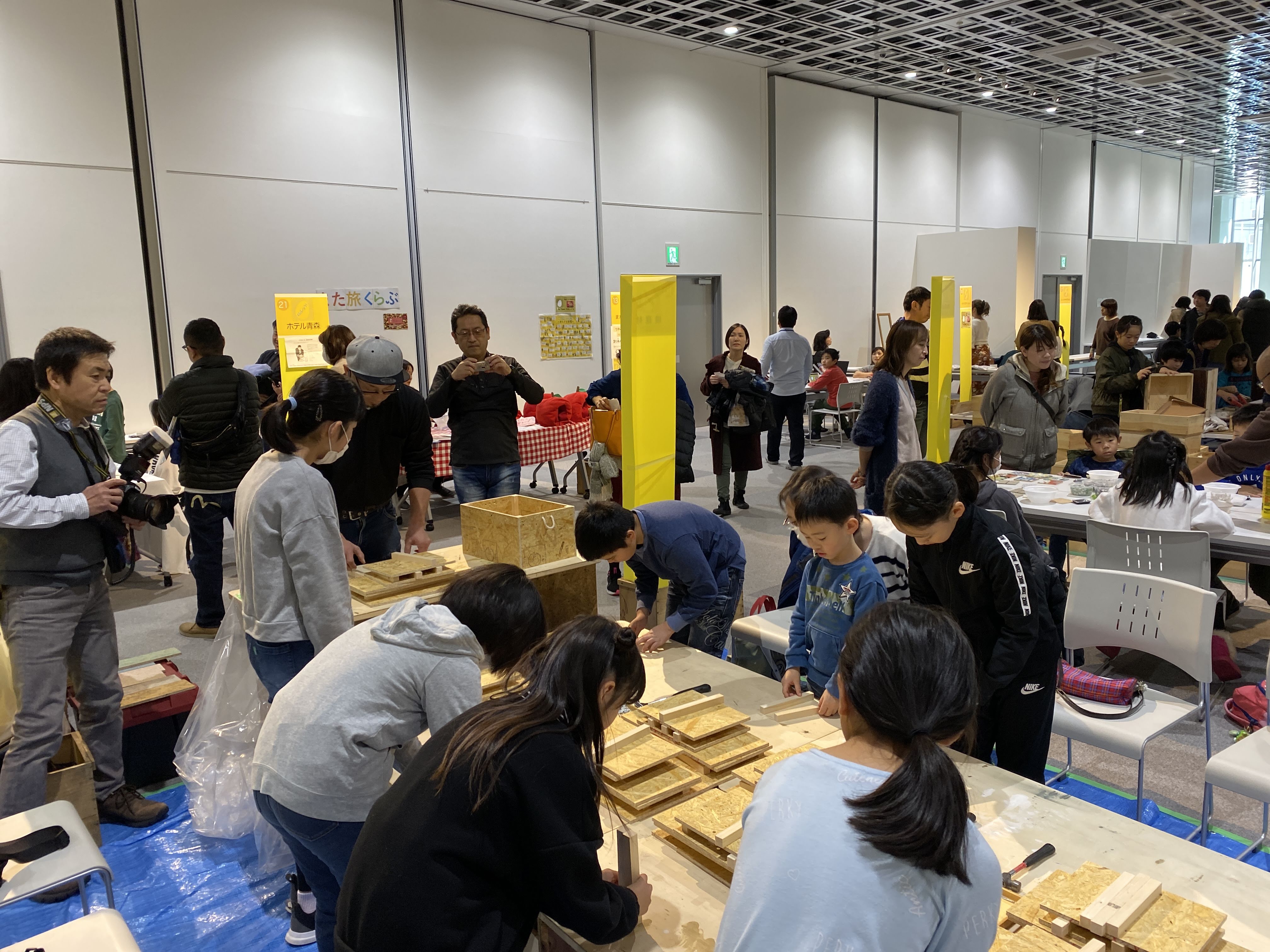 こんにちは。 建築課の濱田滉大です。 本日、勤労感謝の日は「こどもおしごとエキスポ 『オムレッツ!あおもり』」に参加しておりました!! 実際に現場にも出ている大工さんの指導を受けれる貴重な時間だったと思っております(^_^) 現場では敵知らずのうちの大工さんでも、教えるとなると一苦労らしく「疲れた」という感想でした(笑) それでも、全体的にはすいすい進んでいった印象でした。 大人でも結構苦戦する釘打ちもあまり苦にせす進んできました!lこれが若さか(笑)