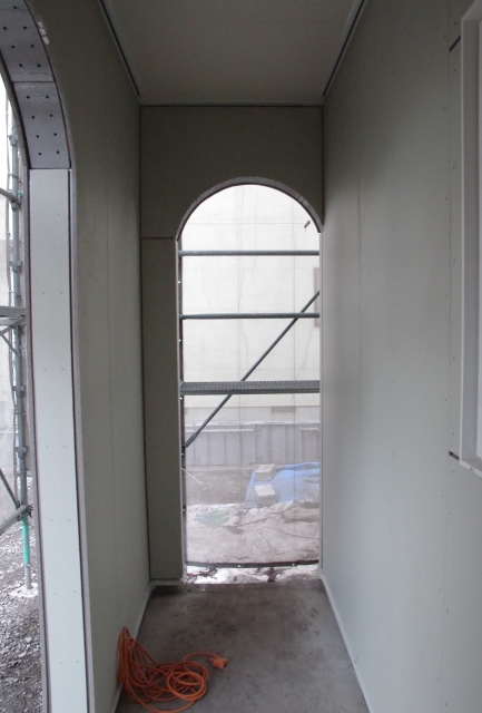 例のアーチ部分もちゃんと成型されて、よりアーチらしくなっております(よりアーチらしいってなに笑)ネットの間からチラチラ見えている部分やこれまでの工事写真からそれとなくどんな家になるのか分かる人もいるかもしれませんが(そんな人は充分旭工務店マニアな気もしますが笑)どんな家に完成するのか、お楽しみに!