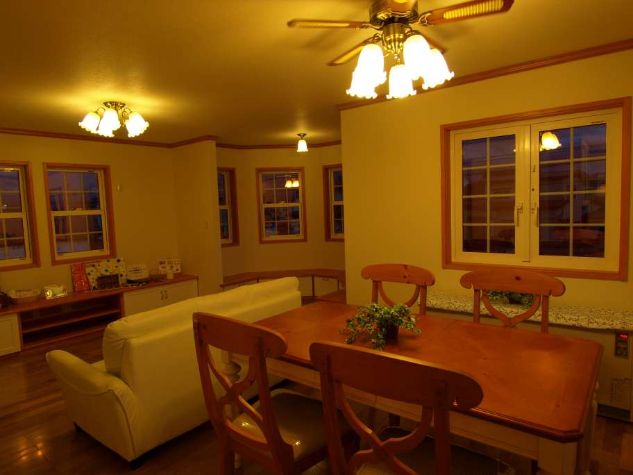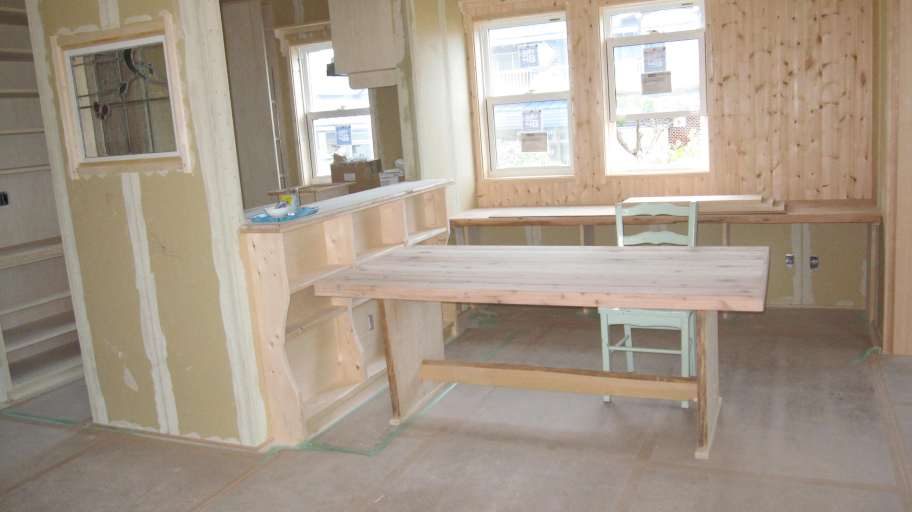 のダイニング 昨日工場で製作したばかりの食卓テーブルがお引越し終了で