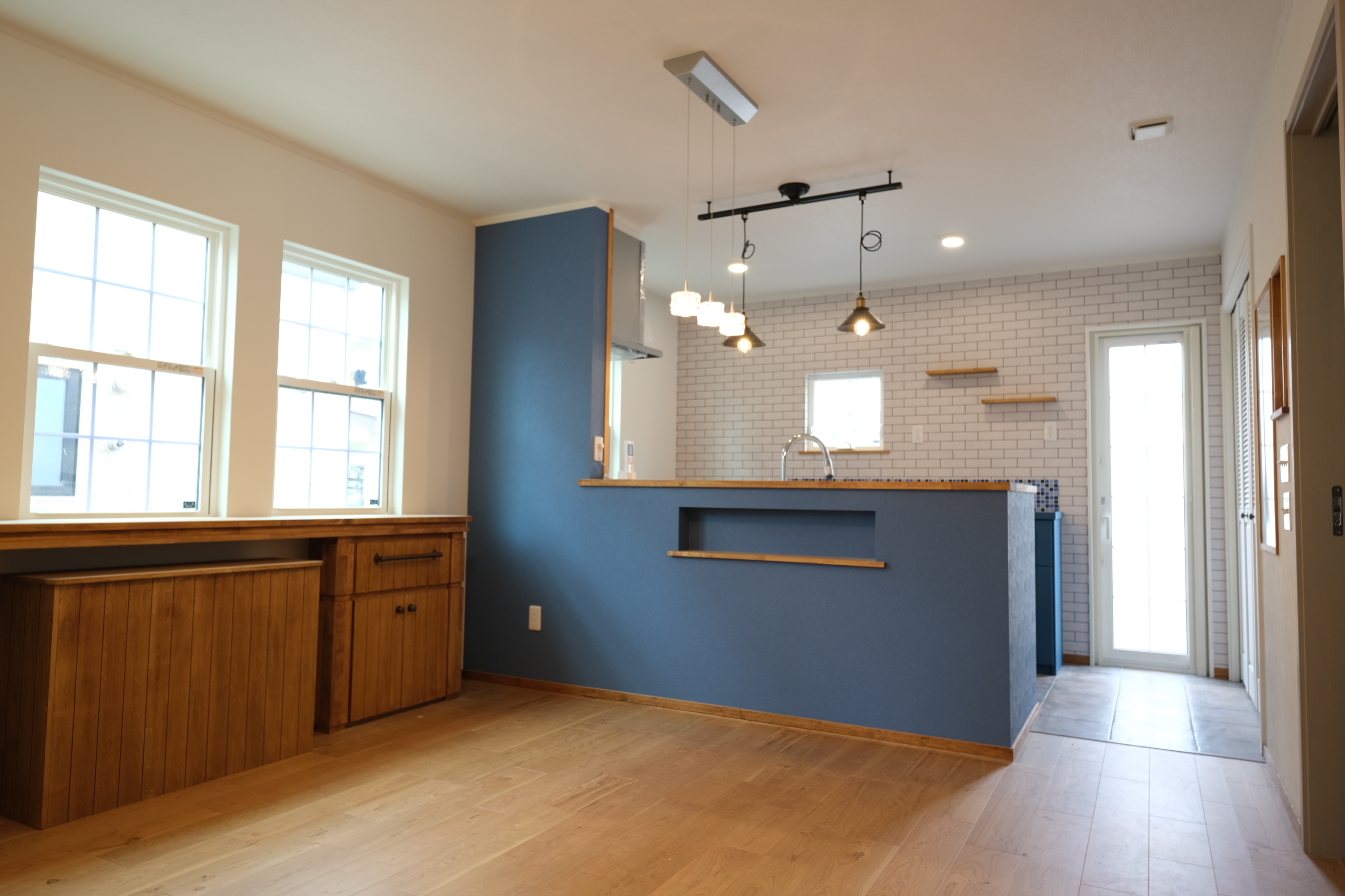 こんにちは。 建築課の濱田滉大です。 大きい工事が一通り、終わったという事で大野の現場の方にさっそく潜入してきました!! 青に塗装されたドアがおしゃれでいいですね!惜しむべきは、私の影が左下に出てしまったことです(笑)M様、大変申し訳ございません<(_ _)>次回は、ちゃんとライトを持っていきますという言い訳をさっそくかましつつ(笑) リビングもドアと同じ青と白を基調とした空間になっていますね。写真だと見えずらいですがキッチンの後ろは白のタイルが張っています(^^)/更に後ろのキッチン台の方には、また別の青のタイルが貼られているお施主様のセンスによる、オシャレな空間に仕上がっております!!! 2階の方は子供部屋などご家族のパーソナルスペースが中心となっております。ここもそれぞれの個性を出すために色分けされていたりと工夫されております。著作権の関係があるので写真は掲載しておりませんが、漫画棚(本棚)があるのが個人的に非常に羨ましい限りです(笑) この後は、細かい電気の配線の工事や検査を経て、お引渡しとなります(^_^)(今回はその前にもう一つ大きいものがありますが…) M様、ここまでくると早く住みたい!という気持ちが強くなるかと思いますが、もう少しだけお待ち頂けるとありがたいです。 旭工務店公式LINE@では直接のお問い合わせメッセージもお待ちしております。 家づくりに関しての気になる疑問から、具体的なお悩みまで、お気軽にご相談下さい