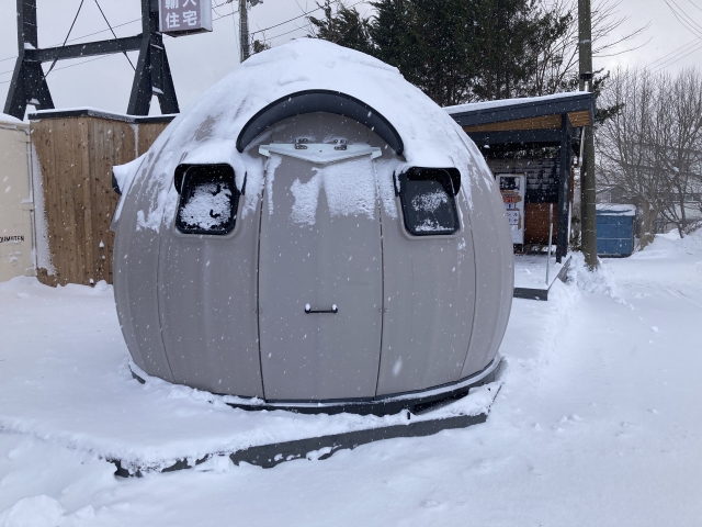 こんにちは。 建築課の濱田滉大です。 青森では年末年始から引き続いてすっかり雪模様の毎日が続いております^^;この影響で旭工務店もそうですが、運送や移動に影響が出ています!こうなると全国の皆様は「雪は大丈夫なの?」と思われているかもしれないが、全然大丈夫ではありません(笑) 事務所に積もった雪の高さですが、私の身長よりも高いので3mくらいの高さはあります(;^ω^)そんな年末年始の青森の雪にも負けなかった「EZ DOME HOUSE」は本日も展示されています(^^)/ 雪まみれではありますが(笑)カタログ上は青森の雪にも耐えれる構造にはなっていたのですが、去年から設置して初めての冬だったので若干の不安がありましたが、無事青森の雪にも耐えれることが実証出来ました!冬の屋外に出しているのである意味実験環境としてはこの上ないです(笑) 旭工務店の前を通過する際は青森市内側からも弘前側からもよく見えるので通りかかる方は「なんだコレ?」という顔で見られて行きます(笑)ご興味のある方はぜひお気軽にご相談ください! ご予約やお問い合わせは→TEL 017ー788-2266