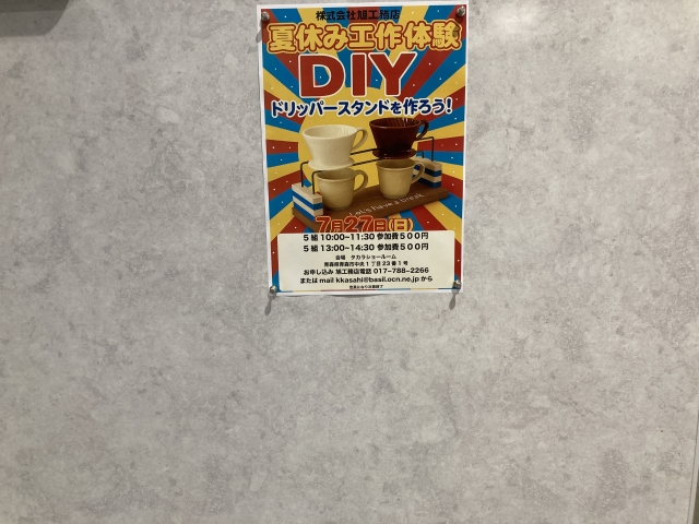 こんにちは。 建築課の濱田滉大です。 昨日発表になった旭工務店のDIYイベントが夏休み工作体験として帰ってきたドリップスタンドの作成体験ですが、会場はタカラさんのショールームです! 住所は青森県青森市中央1丁目23番1号となっています。 先日、ショールームに行ったのは今回の夏休み工作体験の打ち合わせにいっておりました(^_^)ショールームの方にも今回のイベントのチラシとお手本を置いております! 気になる方はショールームにお立ち寄りくださいませ。「旭工務店の夏休み工作体験のチラシを見せてください」と言えば大丈夫なはずです。多分(笑) お申し込みは電話 017−788−2266またはmail kkasahi@basil.ocn.ne.jpからお申し込みをお待ちしておりますm(__)m