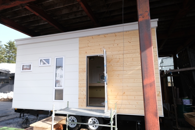 こんにちは。 建築課の濱田滉大です。 トレーラーハウスの方ですが、サイティング(外壁)工事が完了しました! 半分は通常のサイティングで、半分は木製サイティングというこれまでにはないパターンです!キャラクターでいうところのトゥーフェイス、マジンガーでいうところのあしゅら男爵、カレーで言うところのあいがけという感じです(どういう感じ笑) 中は「内部造作」が進行しております! 内部造作というのは、棚や収納部分といった建物の建具と呼ばれる部分の作成がメインになってきます!旭工務店では、建具職人さんである、加藤先生を中心に行っていく作業です(^^)/ただし、「内部造作工事」が終わっても内部の作業自体は終わっていませんのでこの後も続きます。日本語って難しいです(笑) ここら辺の空間がどうなっていくかも含めて、今後の工事の様子もお楽しみに! 旭工務店公式LINE@では直接のお問い合わせメッセージもお待ちしております。 家づくりに関しての気になる疑問から、具体的なお悩みまで、お気軽にご相談下さい