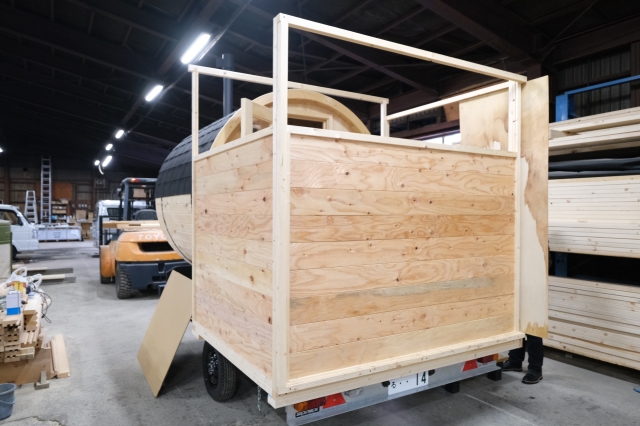 こんにちは。 建築課の濱田滉大です。 以前のblogにて紹介していた旭工務店で作成を開始したバレルサウナはバレルサウナ「本体」が完成しました! いや、なんか色々付いてる\(◎o◎)/!!そうなんです、なんか色々と初期案より盛り上がっちゃいました(笑)本体から出ている煙突はストーブの物です、これは旭工務店で展示しているバレルサウナと同じものになります。 当初はサウナ本体だけの予定でしたが、「せっかくサウナに入るなら水風呂もセットで、それなら周りから見えないスペースも欲しいですよね」という感じで、打ち合わせが盛り上がりましてこうなりました^^;やっぱり旭工務店がおかしいんだと思います(笑) この「青森ヒバ号」は(社長命名笑)これからイベントに出展されるので、見かけた方は「これがあの噂の…」という感じで見といてください(笑) 旭工務店公式LINE@では直接のお問い合わせメッセージもお待ちしております。 家づくりに関しての気になる疑問から、具体的なお悩みまで、お気軽にご相談下さい