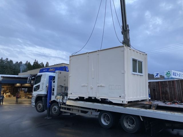 こんにちは。 建築課の濱田滉大です。 先日のイベントでも桂木の「Corie」さんの出店スペースとして、大活躍だった12ftのコンテナですが、実は今月開催されるイベントへのレンタルが決まっております\(◎o◎)/! という訳で、搬出作業が行われました!小型の12ftのコンテナとはいえ、重量はかなりの物があるので搬出にも専用の重機を使用して行っています(^_^) トラックに積み込まれて出発しましたが、かなりの大きさなので旭工務店の前を通る車の皆さんは「なんだこれ!?」という感じでのぞいていきます。イベントの詳細に関しては後日発表できるかと思いますが、今月の下旬まで旭工務店の方には12ftのコンテナはありませんので、見学をお考えの方はご了承くださいませm(__)m