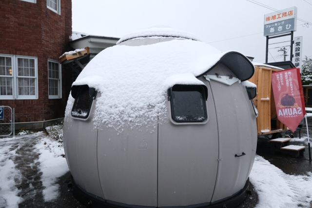 こんにちは。 建築課の濱田滉大です。 ついに青森でも本日、雪が降り始めてしまいました(^-^;一年くらい全く降らなくてもいい年もありそうですが、毎年律儀に降るんだなあ(笑)すっかり事務所の周りも雪景色です。 展示中のEZ DOME HOUSEにも雪が積もってました(^_^)一周回ってなんだか風流景色な気もしてきました(笑)こんな状態ですが、もちろん見学は可能な状態にしていますのでトレーラーハウスやバレルサウナと合わせて見学をお待ちしています。 こういった場合でもお客様用の駐車場はバッチリ確保しております!大雪が降った場合でも、社内(大工さんも含む)の全員で雪かきをして、「停められられない」ということはありません(^ ^)もちろん29日(土)〜30日(日)の「移・食・住の防災展」も同様です。 という事を雪だからしょうがないという言い訳で外出してない私、濱田滉大がお伝えしました(笑) 旭工務店公式LINE@では直接のお問い合わせメッセージもお待ちしております。 家づくりに関しての気になる疑問から、具体的なお悩みまで、お気軽にご相談下さい