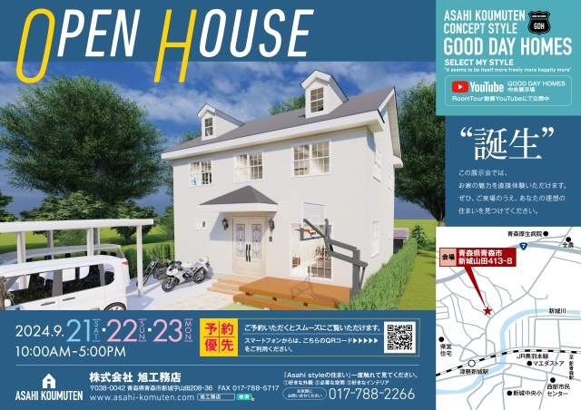 こんにちは。 建築課の濱田滉大です。 この度、旭工務店のYouTubeにて「緩やかな曲線を描くサーキュラー階段がある2階建ての家」 OPENHOUSE開催の動画を公開しました(^^)/ OPENHOUSEの詳細を確認しながら、3DCG動画で建物も予習できるなんとも贅沢な動画になっております(^_^) 「緩やかな曲線を描くサーキュラー階段がある2階建ての家」 OPENHOUSE 会場 青森市新城山田413-8 開催日時 9月21日(土)、22日(日)、23日(日)10時~17時 お問い合わせ先 TEL017-788-2266またはお申込みフォームから 中心に軸を持ち、緩やかな曲線を描くサーキュラー階段がある家。実際に打ち合わせを重ねて、お客様の要望を叶えた家が完成しました。なお、予約優先となっております、予約状況に応じて時間調整をお願いする事がありますので、予めご了承くださいませ。また、見学予約をされる場合には、参加希望日と時間を合わせてご予約をお願いします。 ・・・・・・・・・・・・・・・・・・・・・・・ 高級感のある素材と緻密なデザインが、時間と共に深まる重厚感を演出した外観となっています。そして、バランスの取れたシンメトリーなデザインが、美しいプロモーションと品格を生み出します。伝統的な美しさを感じさせるドーマー付きの三角屋根は、家全体にクラシックな雰囲気をプラスします。優雅な両開きの玄関ドアは、訪れる人々を温かく迎え入れます。クラシックなデザインの上げ下げ窓を採用しているので、自然光をたっぷりと取り込み、明るく開放的な空間を実現します。 この住宅は、機能性と美しさを両立させた理想の住まいです。展示会でぜひ、その魅力をお確かめください。
